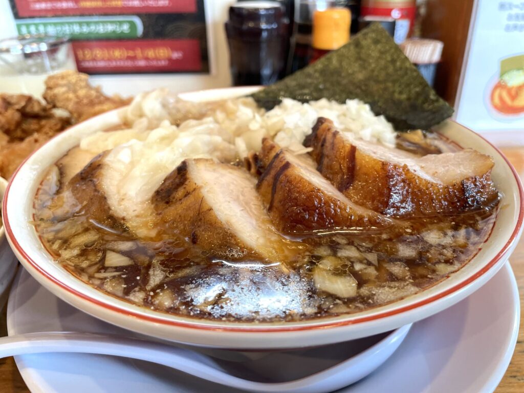 まずは、分厚くて大きいチャーシューが目に飛び込んできたのですが、実は出汁感感じるスープや、程よい茹で加減の麺もスープに絡むし、すべてで押し寄せてくる、まさに進化系竹岡式ラーメンだったのです。