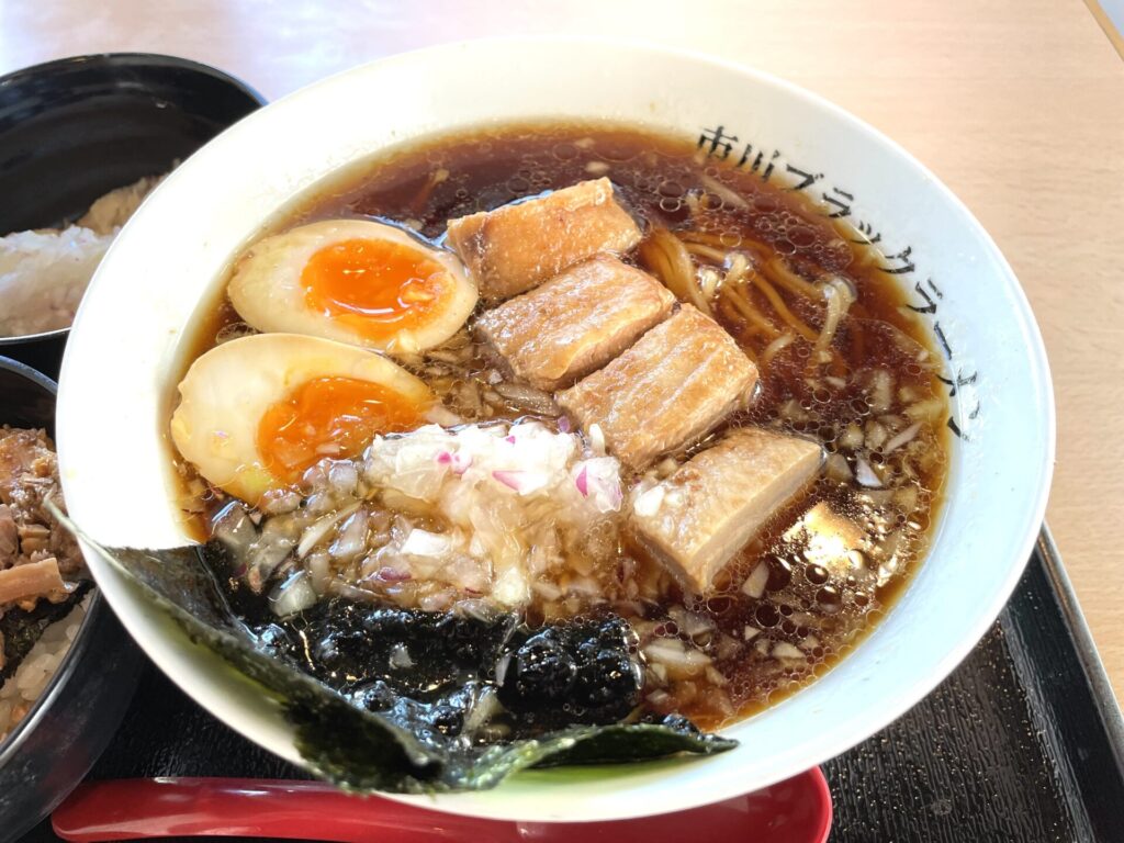 そんな市川ブラックラーメンでいただけるのは、竹岡式ライクな1杯です。