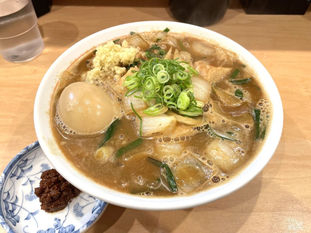 さに、赤みそ、八丁味噌が使われた濃密なスープは、濃厚さもありながらも軽やかさもあり、その美味しさに圧倒されます。