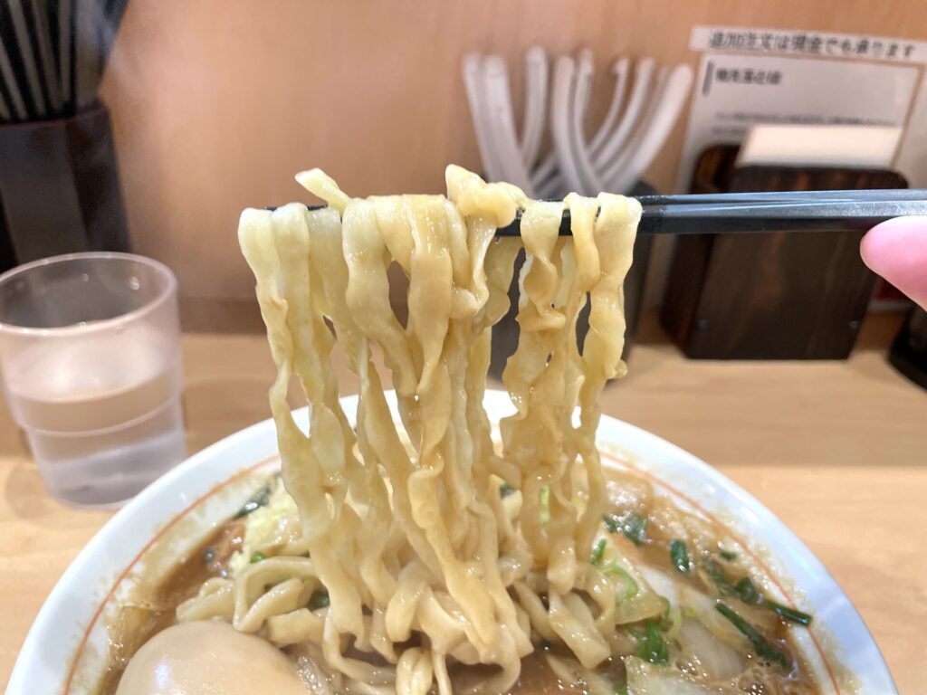 プリっとした食感の西山製麺の麺もパンケのラーメンには欠かすことのできません。炒め野菜なども絡めて啜るのも最高ですね。