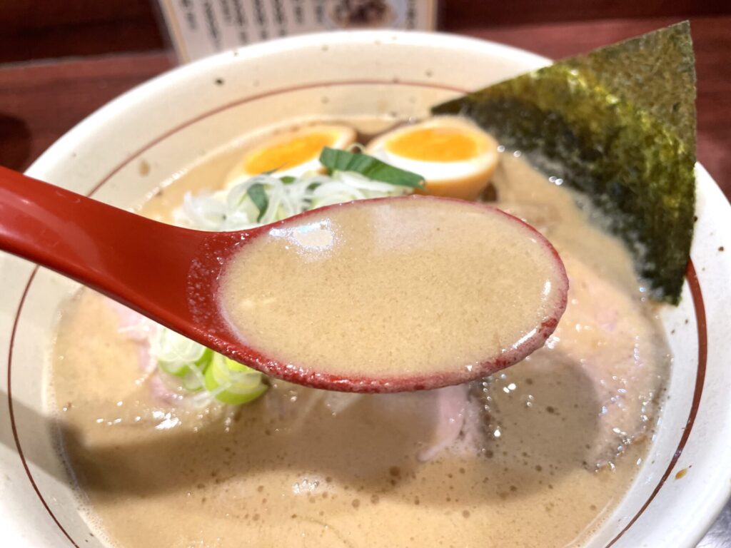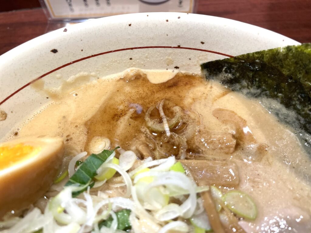 しっかりとゴマを感じるスープで、軽やかさも感じる舌触り、ほんのりコク深さも感じます。