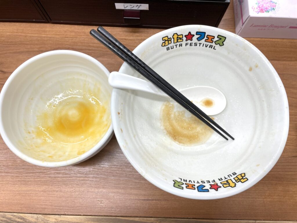 気づけば丼が空に。濃厚ながら豚の圧倒的満足感に背中を押されて、自然とレンゲが止まらなくなっていました。