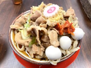 山のように盛られた野菜、大きめの豚など、この1杯が目に飛び込んできた瞬間にテンションが上がります。