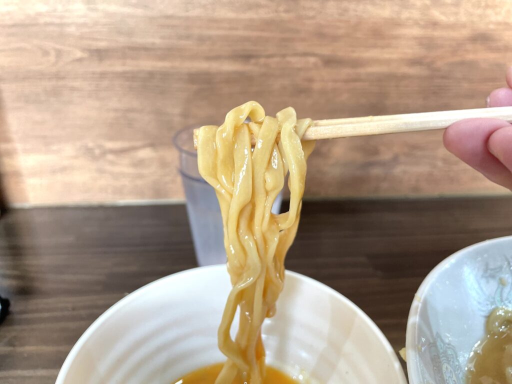 滑らかでプリモチ、そしてハードさも感じる麺で、少しうねりがあり、唇を通過が良い意味でクセになります。