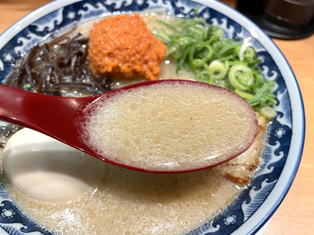 ほんのりパンチを効かせた豚骨スープは、思いのほか重厚感が前に出るタイプ。
