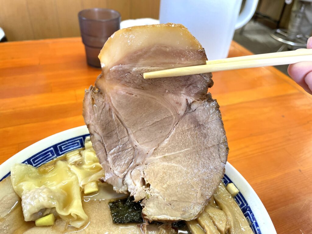 大ぶりで肉感満点のチャーシューは、柔らかさも備えていて満足度もかなり高いもの。特に端っこの脂身の部分が好みです。