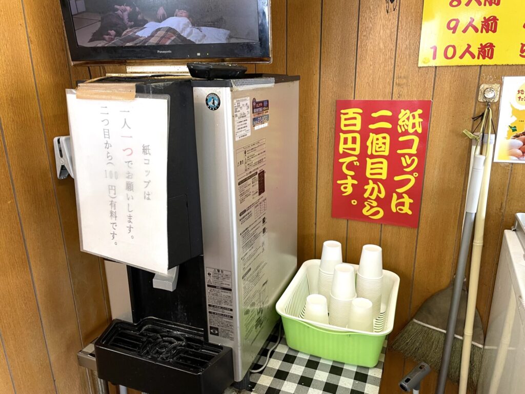 紙コップは2個目から有料で100円ですが、2個目を使われた別のお客さんがしっかりとお代に乗っているのを目撃しました。