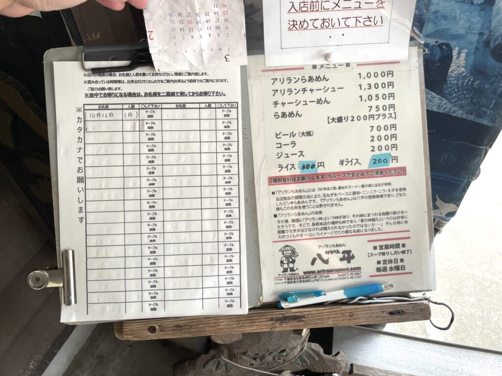 記帳制なので名前を書き、アリランラーメンの説明などを読む