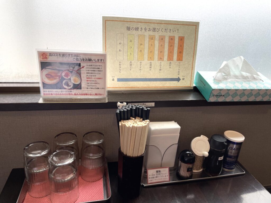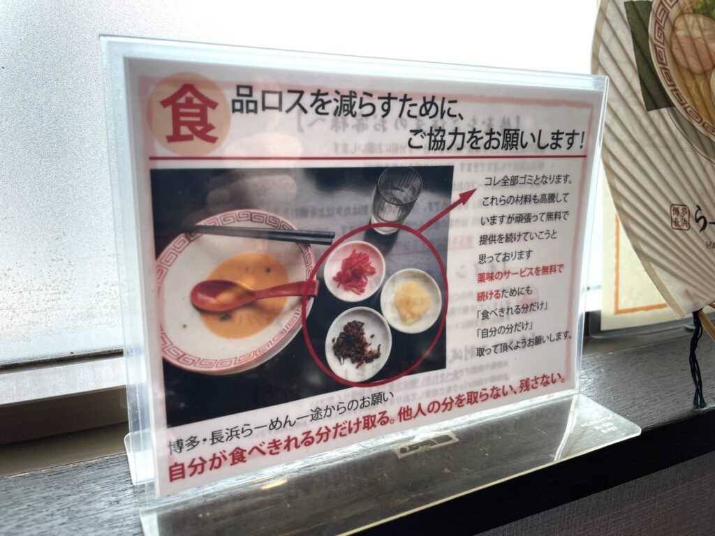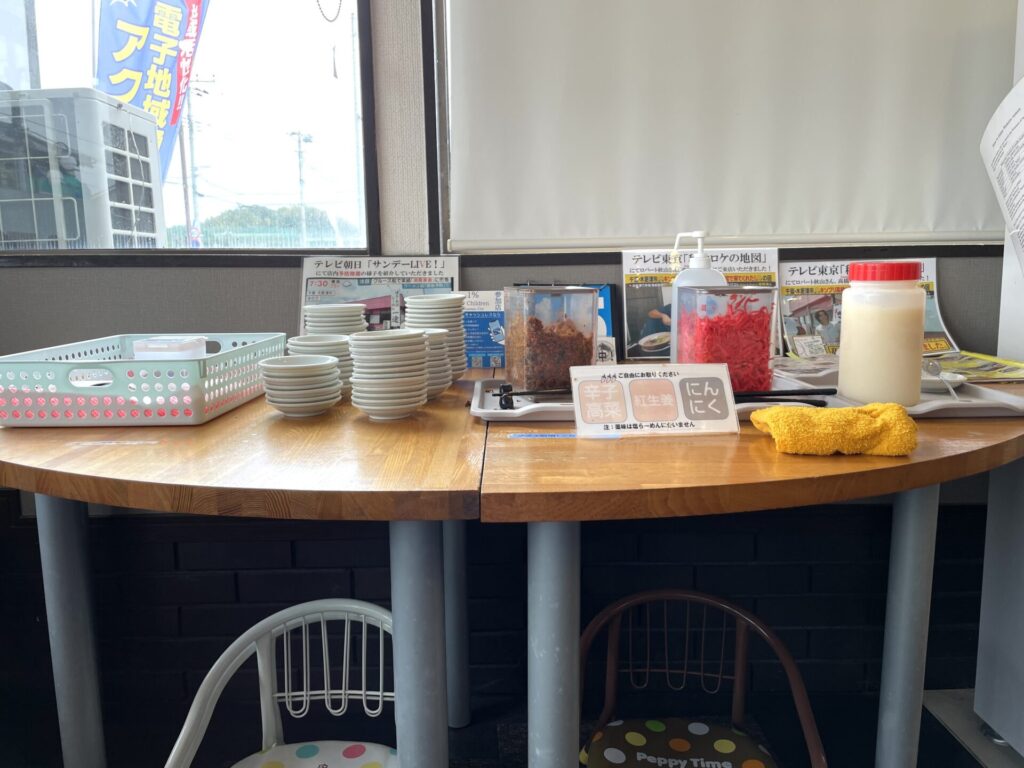 券売機横に、辛子高菜、紅生姜、にんにくが置いてあり、こちらはセルフサービスとなる