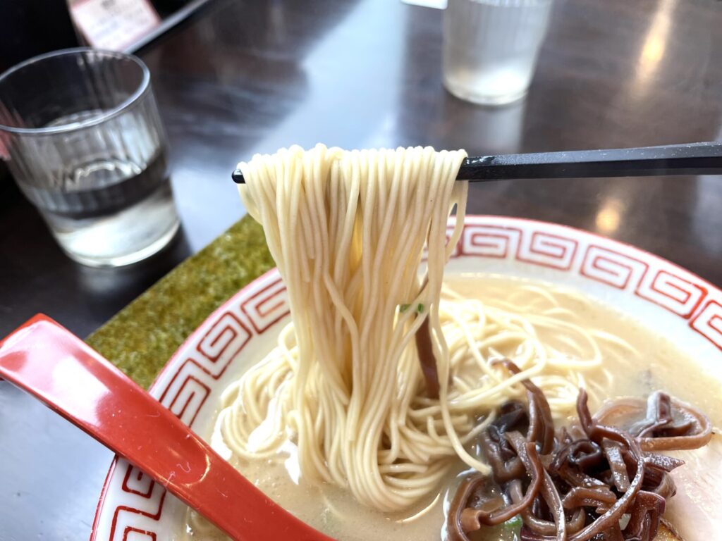 スープを持ち上げつつ、麺の風味もしっかり感じるもの。麺の固さは「普通」でリクエストして、もっちりな仕上がりでした。
