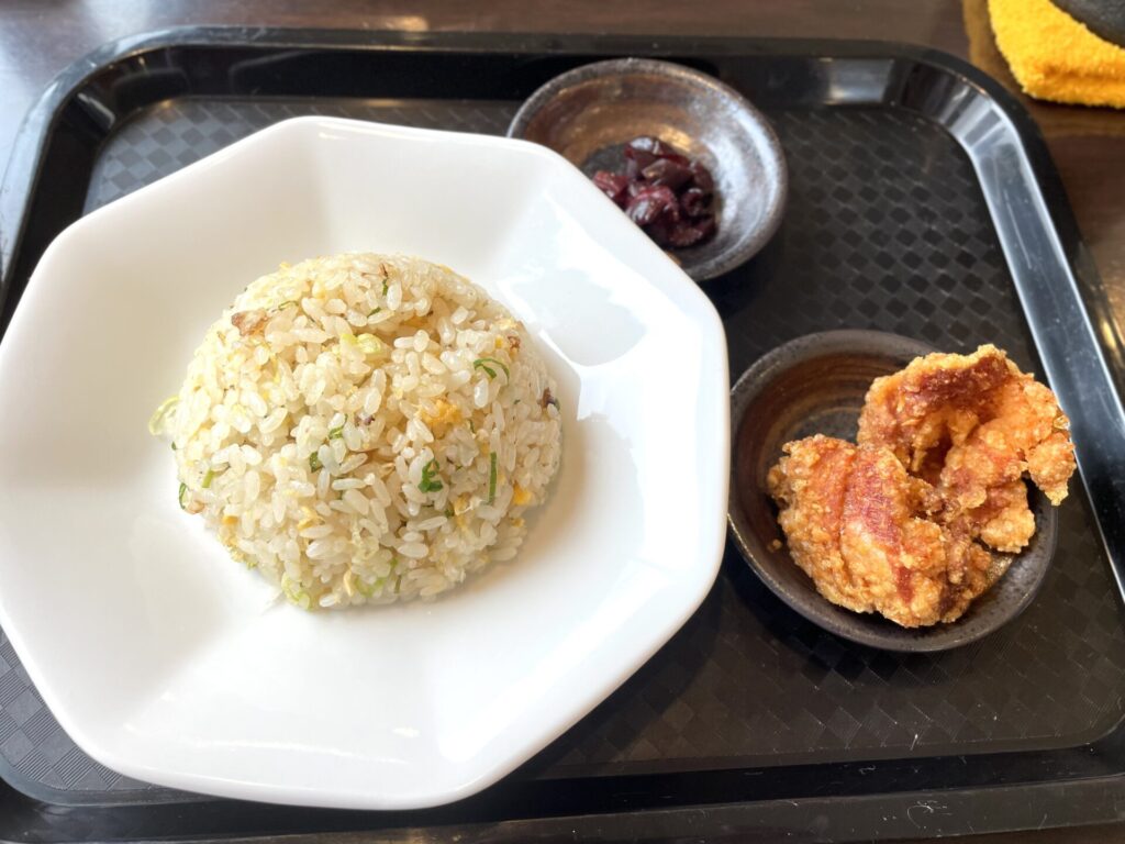 程よい味付けの半チャーハンに、ジューシーな唐揚げは最高でした!