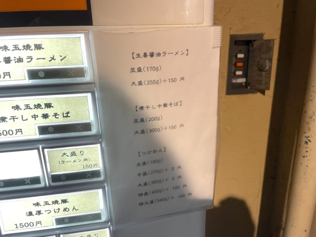 麺量と価格