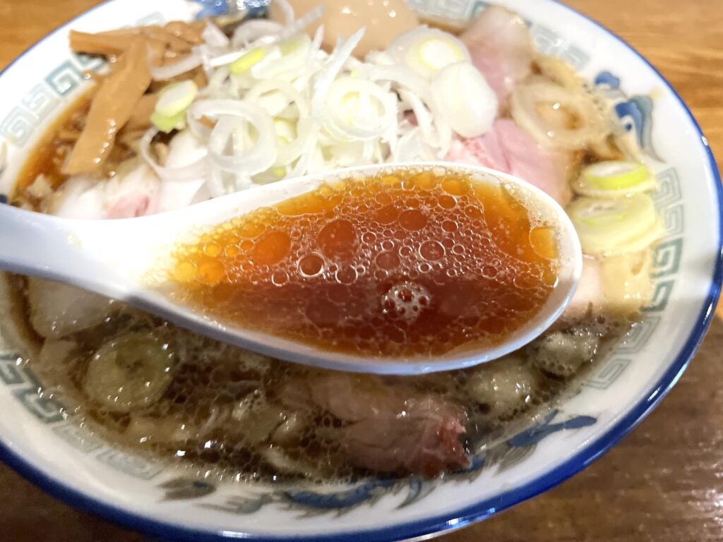 やや濃ゆめで力強く訴求すごい煮干しスープは、人が美味しいと思うツボをすべて押してくるかのような感覚になりました。麺の食べ応えや、チャーシーの歯が入っていく噛み応えもたまらなかったです!