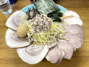 ガッ!ツリと盛られたチャーシューに、THE・ネギの食感が目に飛び込む対面です。