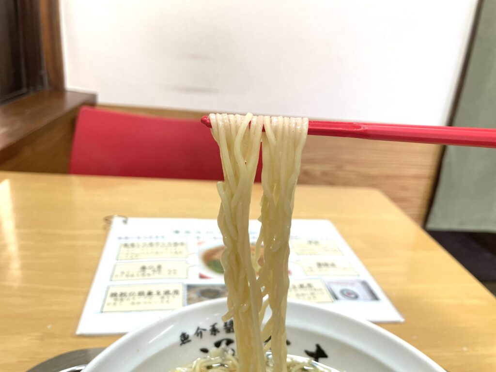 冒頭では、煮干しラーメン店の話をしていますが、6kg以上使われているのいう煮干しをはじめ、様々な素材がピシャリと融合されたスープで、全体の中でも特に鯖のジーンとくる味わいが感じられるところが、個人的にはグっとくるポイントです。