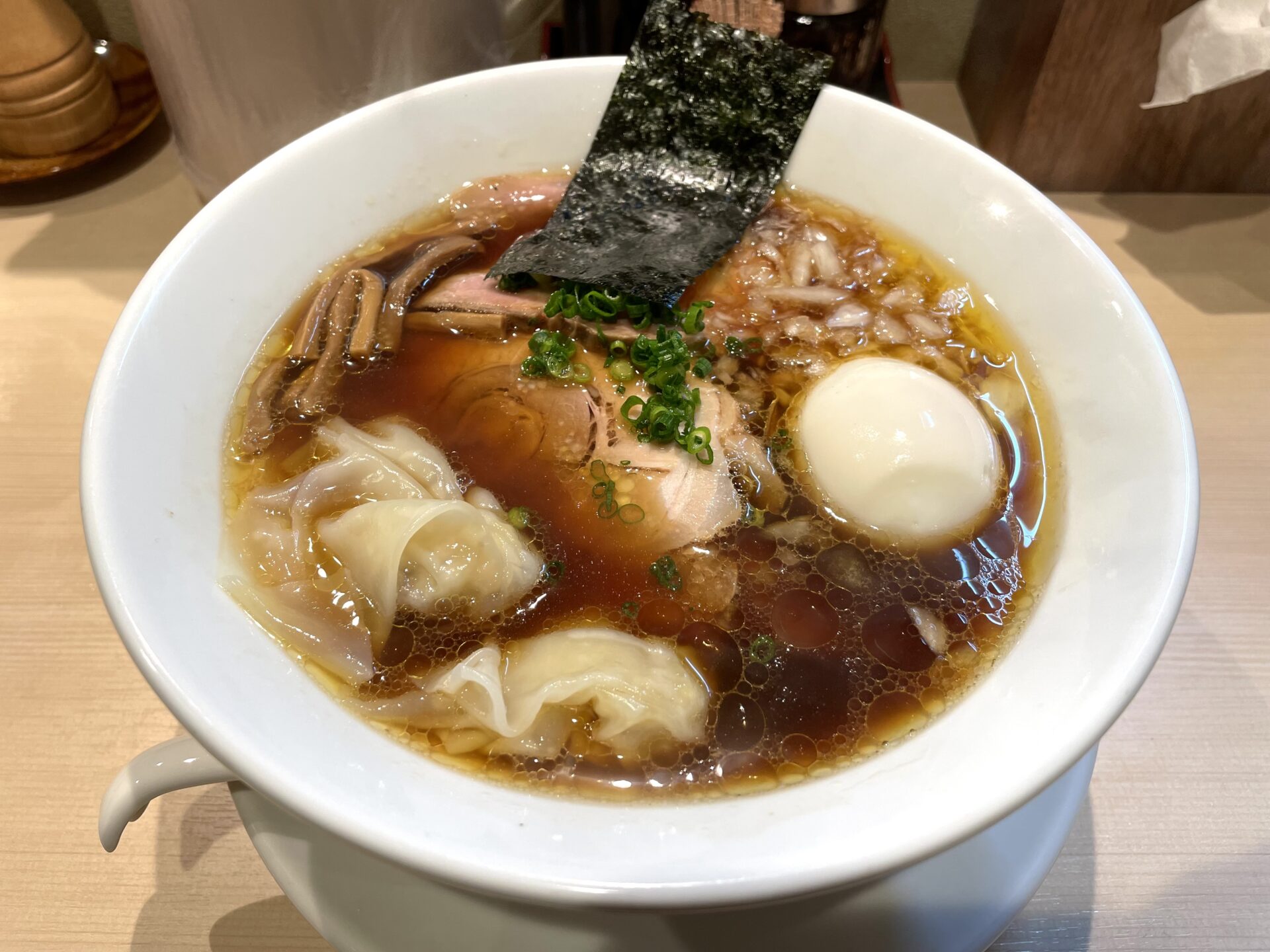 トッピング類も柔らかくもちもちなワンタンや、ホロっと崩れるチャーシューなど、この1杯に彩りを加えていますね。