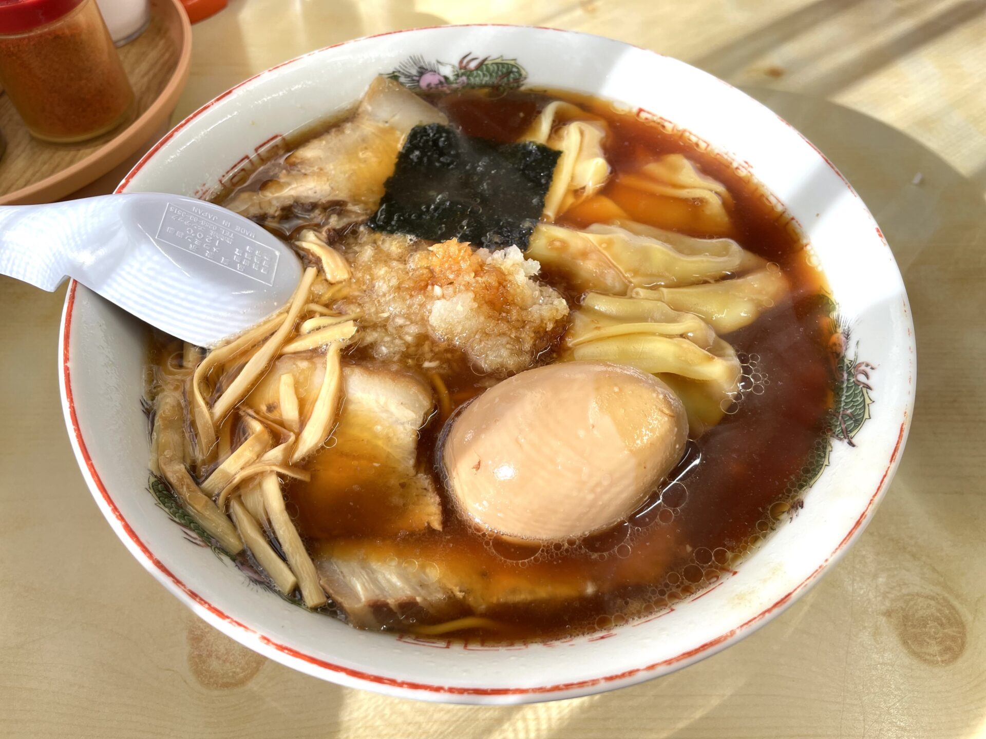 チャーシューワンタンメン、大盛、味付き玉子