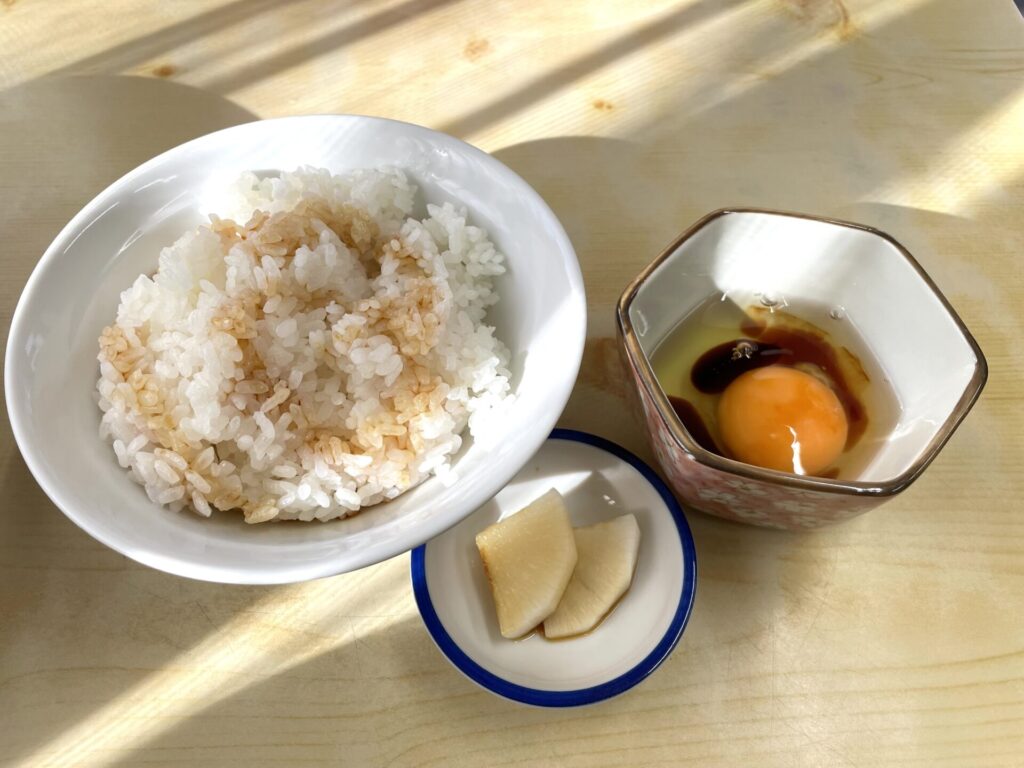 元々、ライスと生玉子には醤油がかかっていませんが、早めに醤油を返却しなければならなかったこともあり、