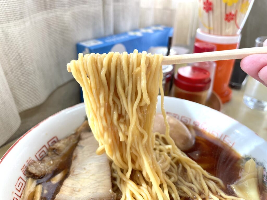 チャーシューの煮汁をお湯で茹で湯で割った竹岡式らしさは確かにあるのに、何かしらで出汁を採っているのでは?と感じるような、奥行きのあるスープで、ついつい飲み進めてしまいます。