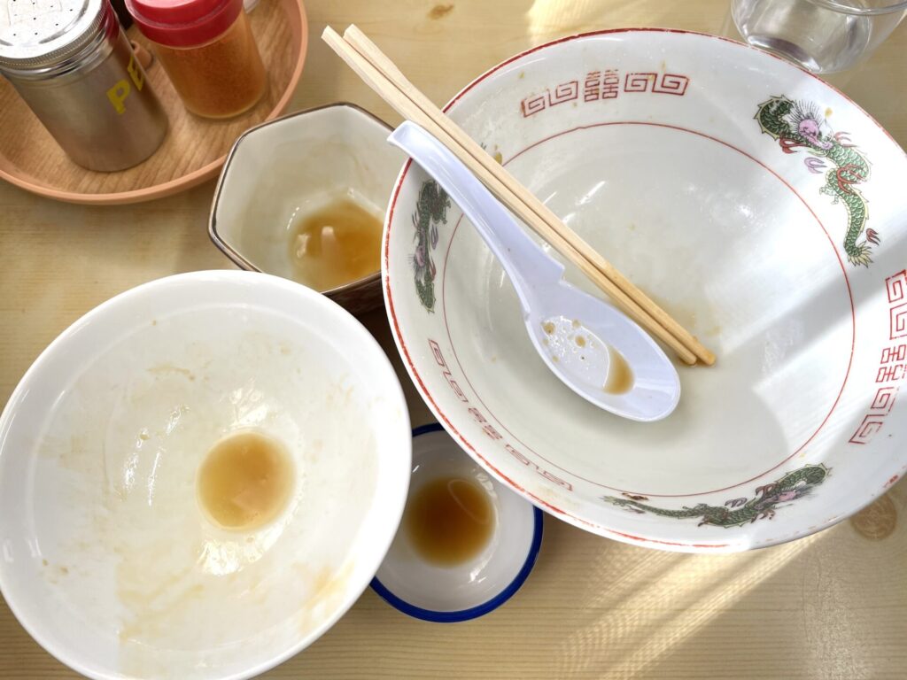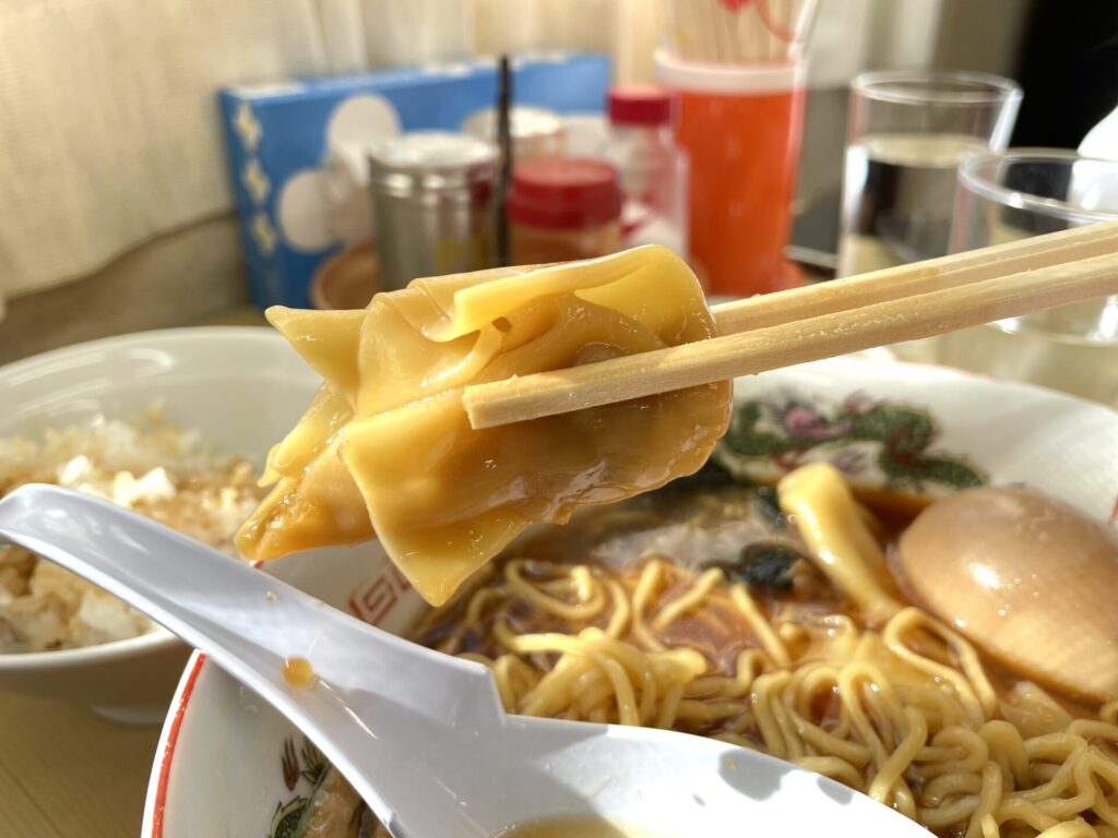 しっかり皮のワンタンは一口サイズで、つるりと流れるように喉を通っていきました。