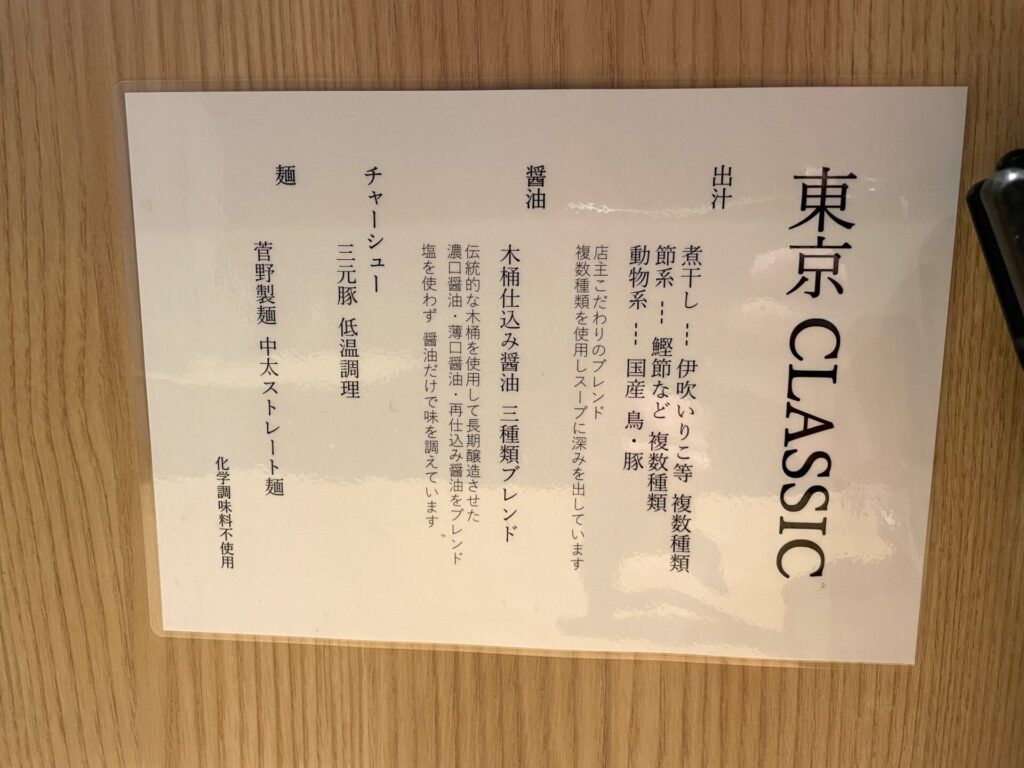 「TOKYO味玉」は、「TOKYO CLASSIC」の味玉入りと思われますが、落ち着くような味わいもありつつ、どこか懐かしさも感じました。