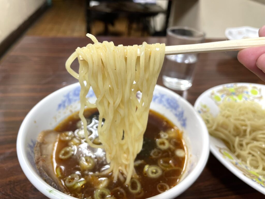 しっかりと冷水でシメられた細麺
