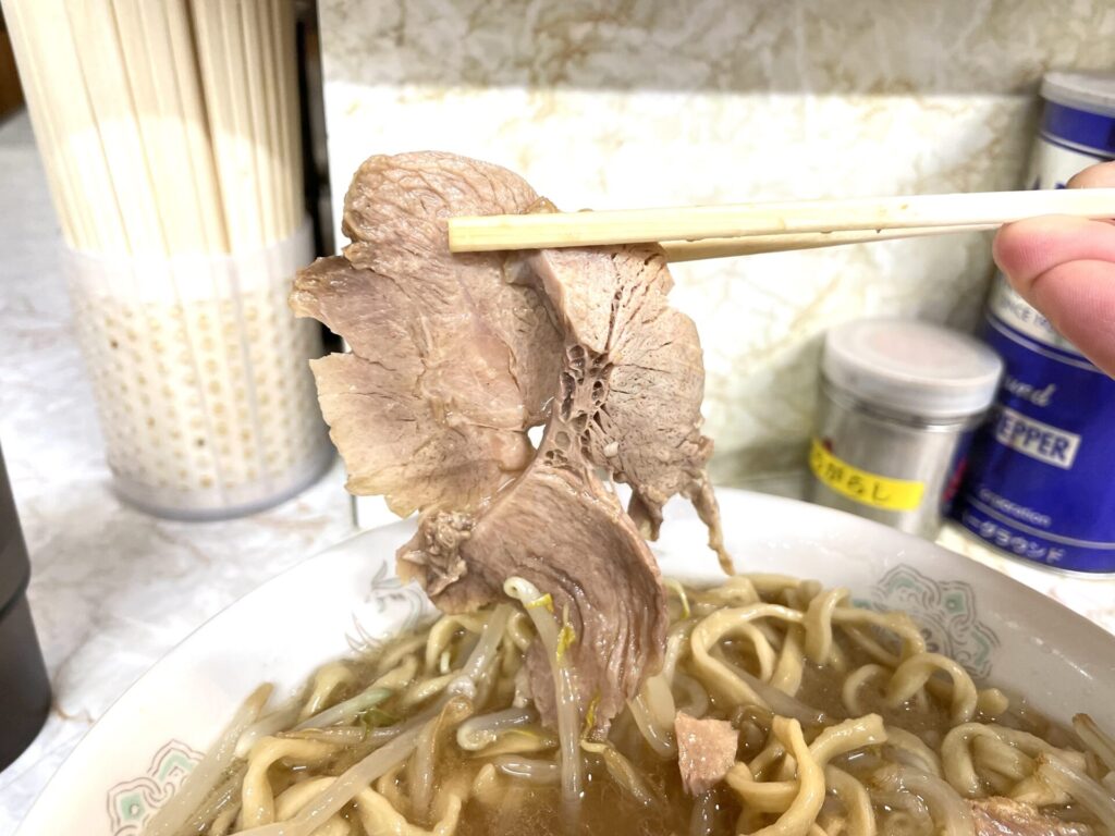 まずはテッペンのアブラと醤油ダレが降りかかる「やさい」からいただきますが、「松信さんに帰ってきた感」を感じる唯一無二の味わいです。今回は、やさい増し券を2枚購入、醤油ダレが上から降りかかる「味濃いめ」にしたので、より長時間、楽しめるのが嬉しいですね。