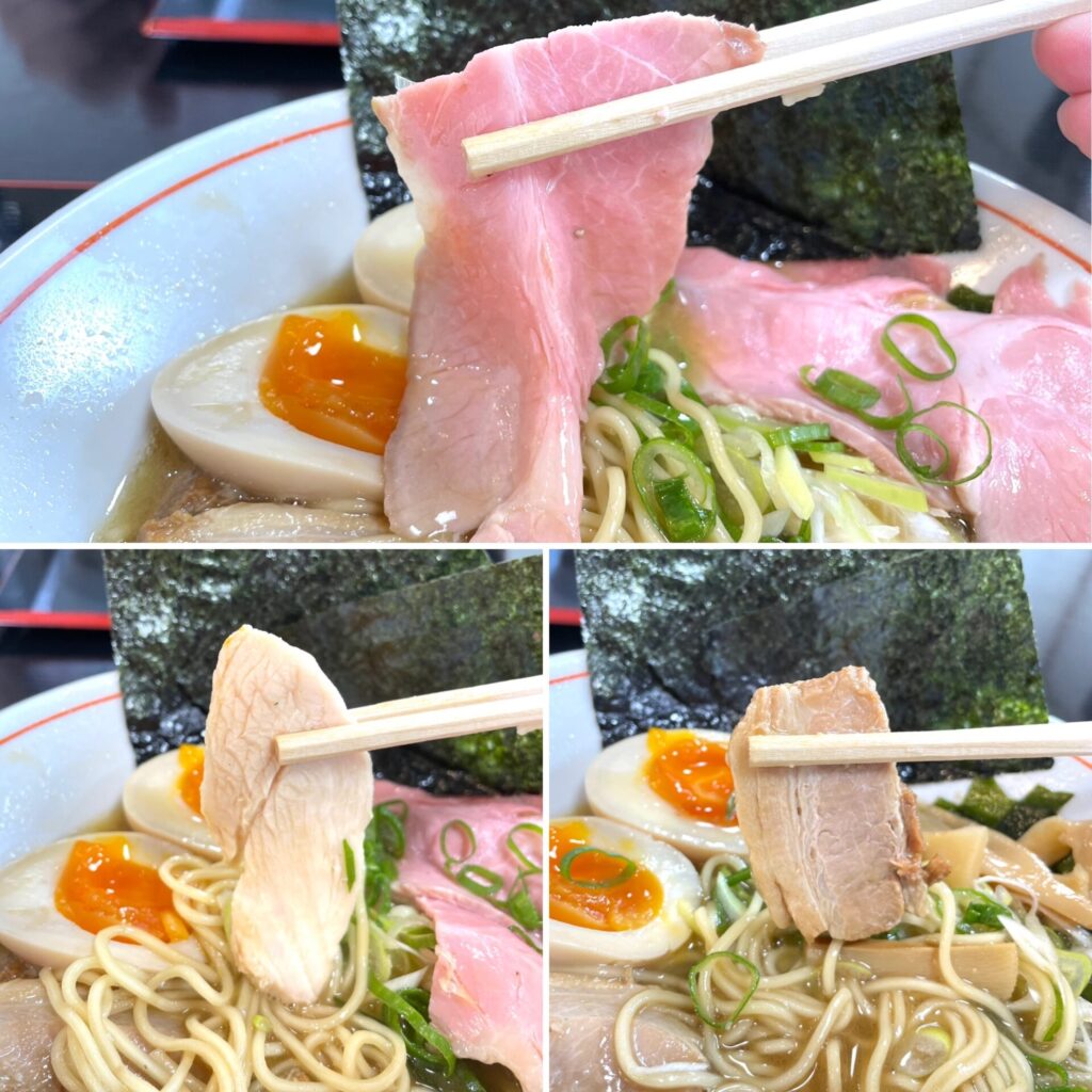 それぞれのチャーシューが2枚ずつのっており、満足度もなかなかのものです!