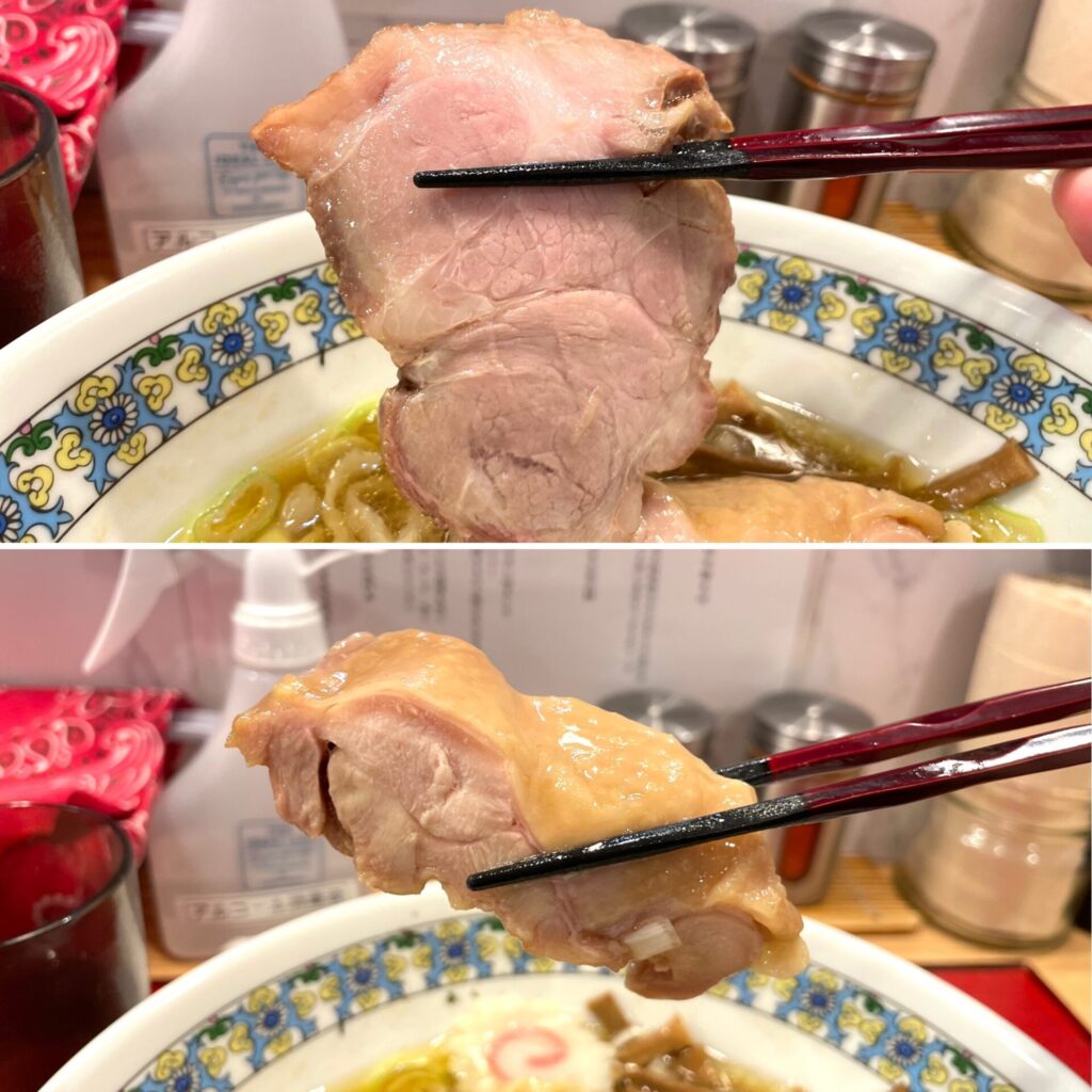 バラ肉っぽいチャーシューもあって、柔らかかった