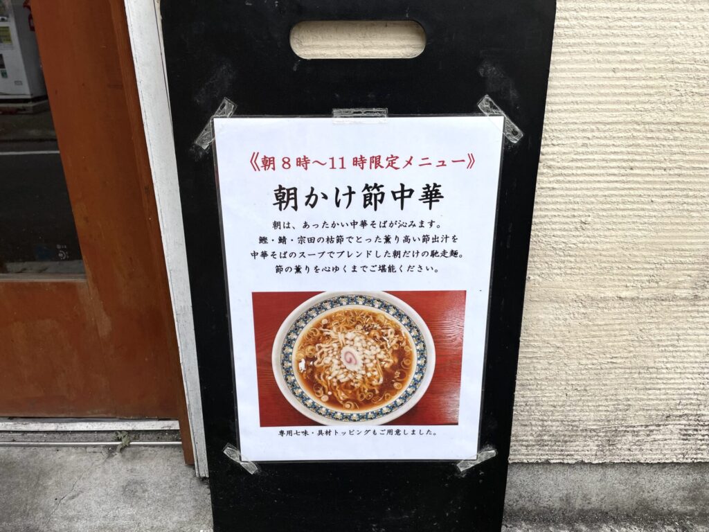 今回、朝かけ節中華も食べたいし、そろそろ提供終了の辛味噌も食べたいしで悩み、まずは、朝かけ節中華をいただきます。
