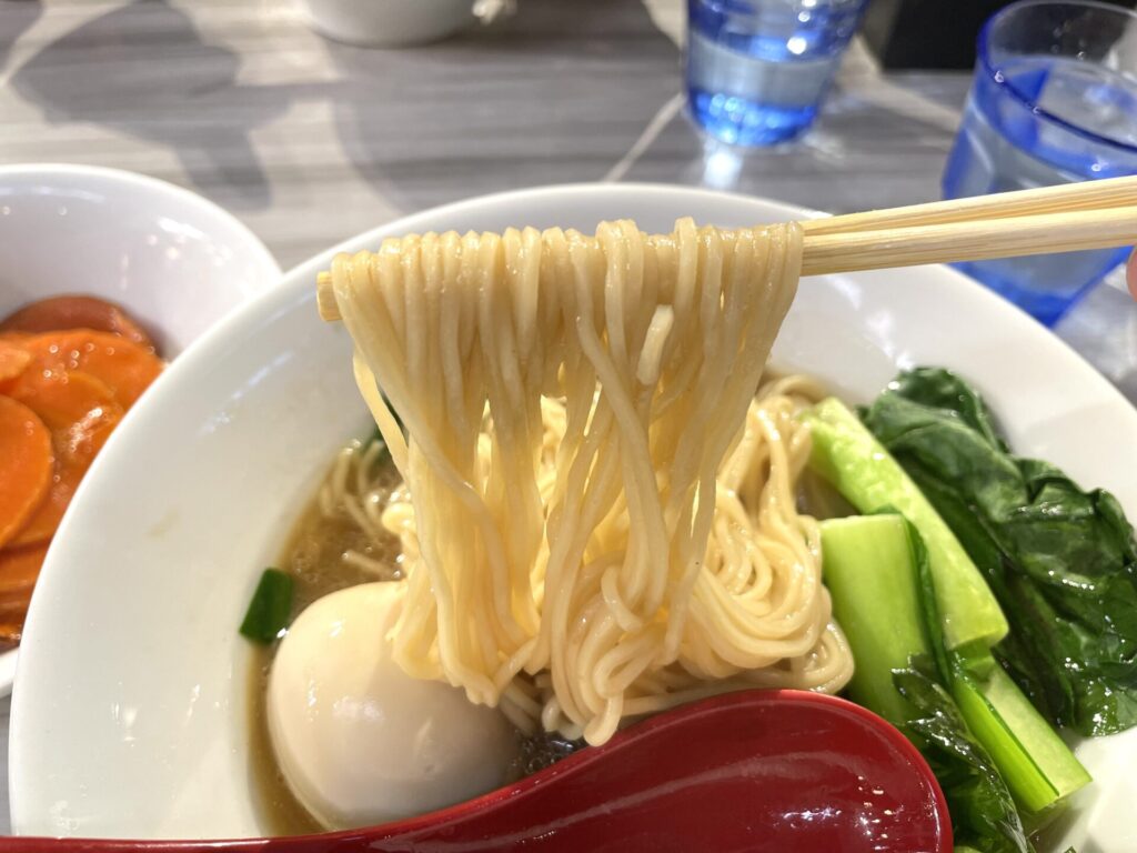 麺は、スープの持ち上げが良く、味染みが良いように感じ、弾力感ある仕上がりで、食べ応えも感じます。