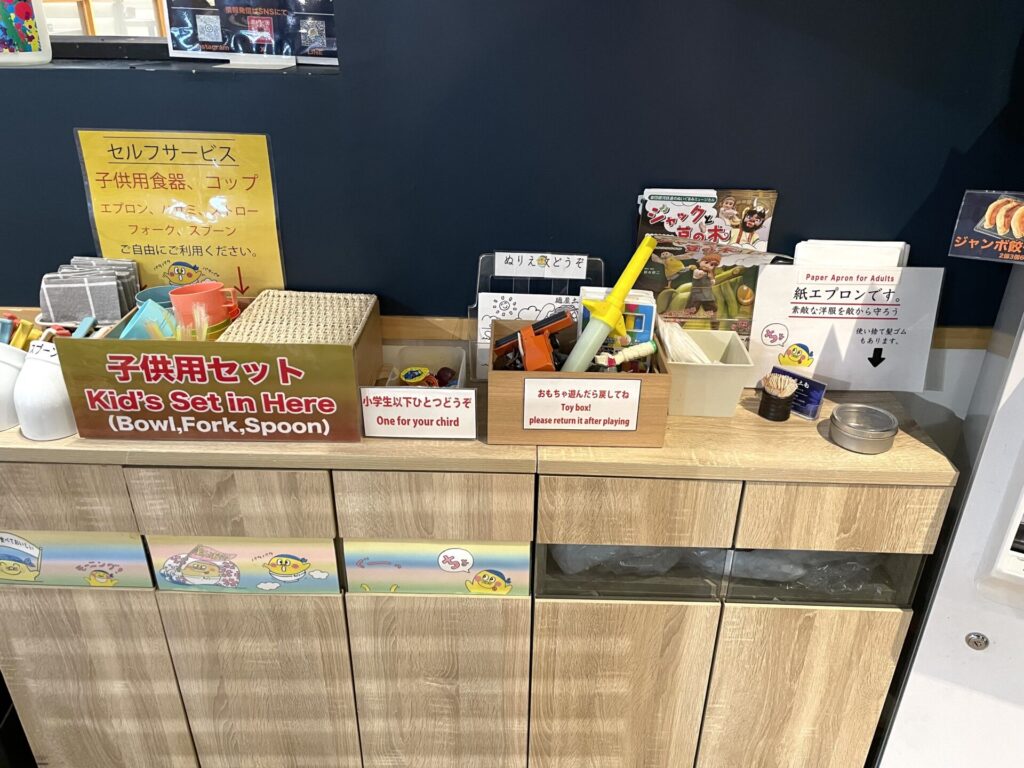 お子様用の食器などがセルフで持っていけるのが、気を使わないかもしれません。