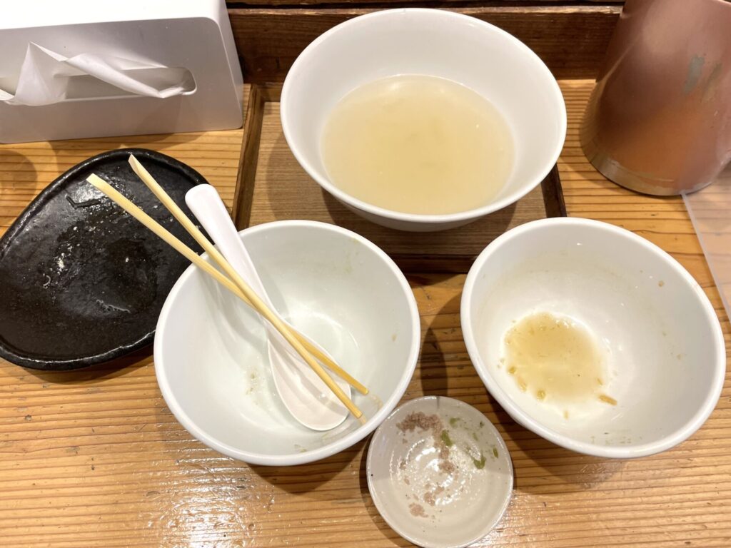 多くの方と同じように昆布水に浸かった麺だけでもかなり箸が進みます。個人的には、塩のカキ油が好みでした。麺量ですが、500gまでくらいまでは「まだまだ全然いける」と確かに思いました。600gだといけるはいけますが、最後のほうは、ズッシリなレベルが上がると思ったので、胃袋に自信のある方以外は、とりあえず麺は追加せず、徐々に麺量を上げていくのが良いと思いました。それにしてもめちゃくちゃうまかったです!