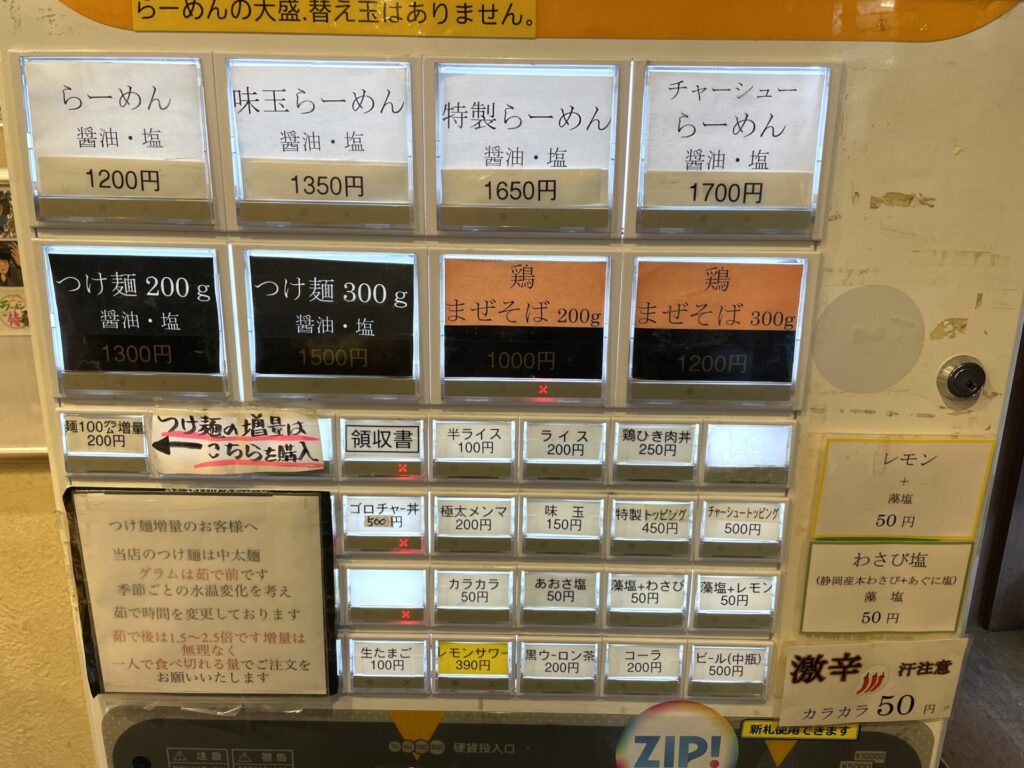 つけ麺は、液体油が選べますが、麺を500g以上にした場合は、2種選べるようです。