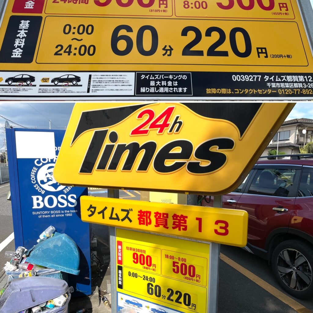 お店の駐車場が空いていなければ、お店の裏の通りに入っていけば、お店から徒歩1〜2分くらいの距離にタイムズというコインパーキングが2つあります。