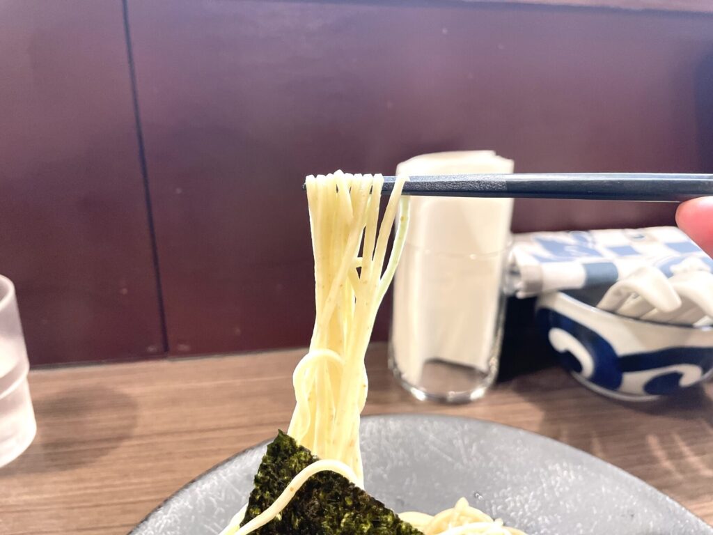 麺は長めなので、まずは「啜り」を存分に楽しんでみてください。唇を通っていく感覚がたまりません。