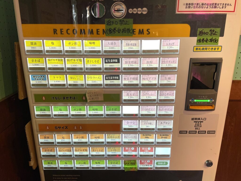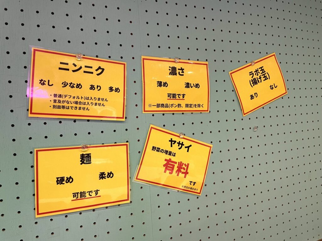 ポン酢 / 煮豚1枚追加 / 野菜半増量 / 味付アブラ / アブラ増し