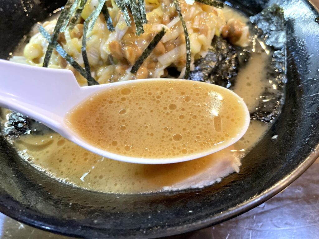ここから、更にまろやかな納豆が溶け込んでいくのが、スープとの相乗効果を生んでいて、めちゃうま!