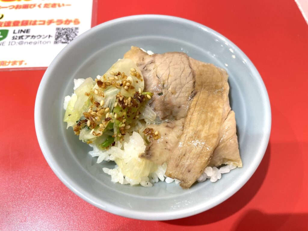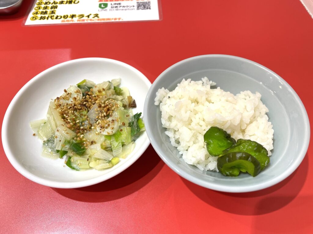 あまとろネギライスのあたま(¥200)、半ライス(無料)もオーダー!
