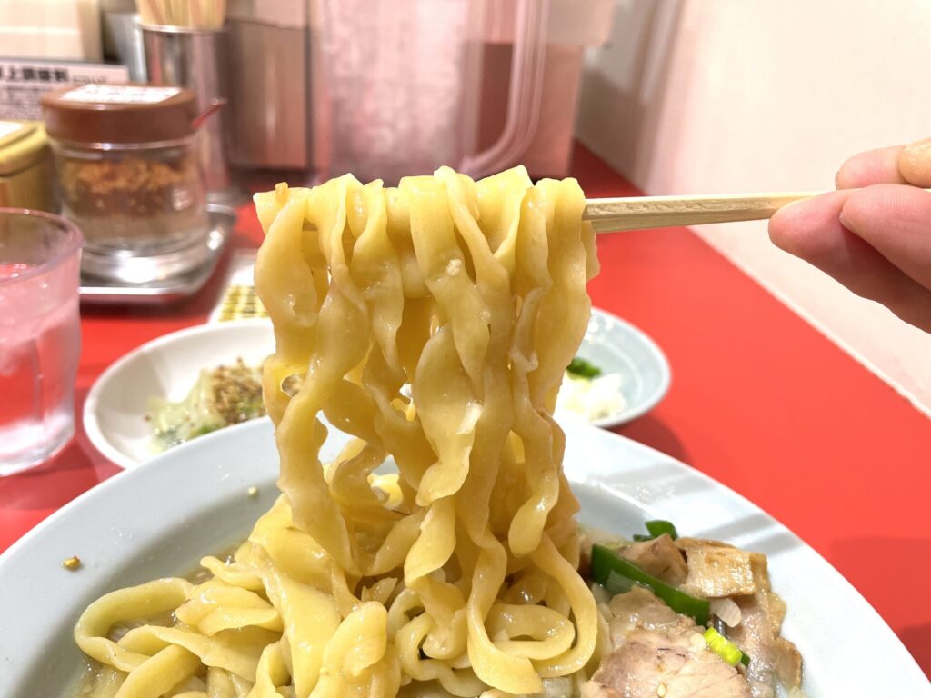 まず、結構麺量が多かったように感じました。具体的に何gかは確認していませんが、大盛くらいの量があったように思います。
