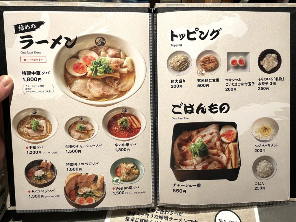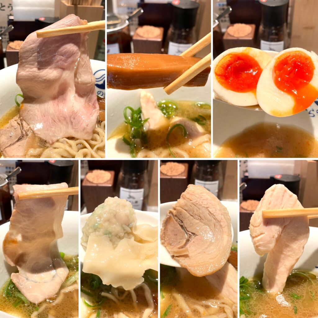 上質なチャーシューやソフト食感のメンマ、水餃子など、トッピング類もラインナップ豊富です。