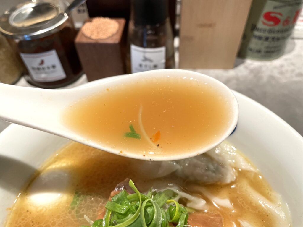 鶏は天草大王、煮干しや鰹、香味野菜を合わせたというスープは、香味野菜の風味が際立ちつつ、各素材が複合的に重なり、訴求感じつつも、軽やかに飲んでいけます。