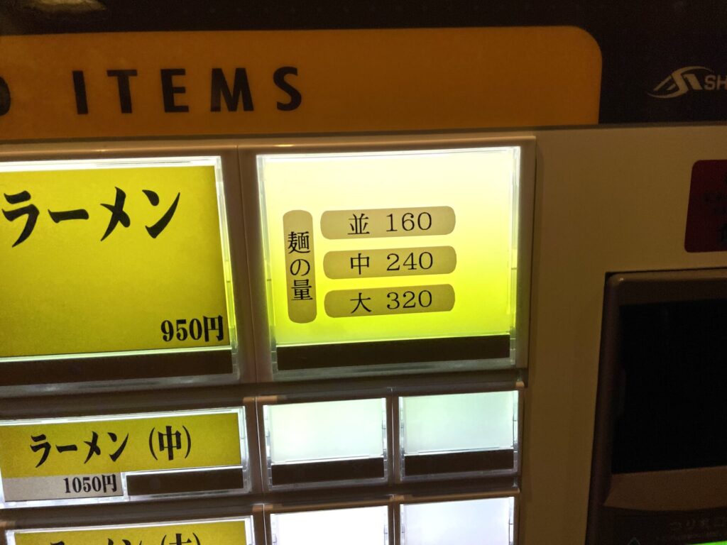 ありがたい麺量表示