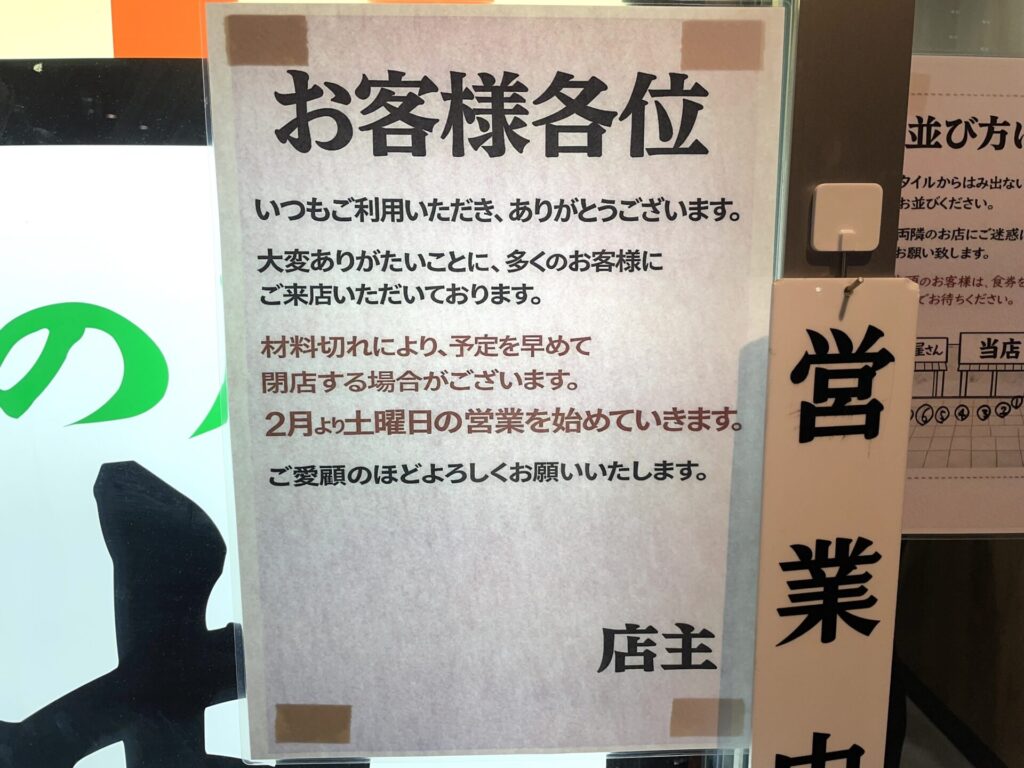 かなり気になっていたのですが、どうやら平日しかやっていない!?と思い込んでいたのですが、実は2月から土曜日も営業されていると、店頭の掲示物に書いてありました。