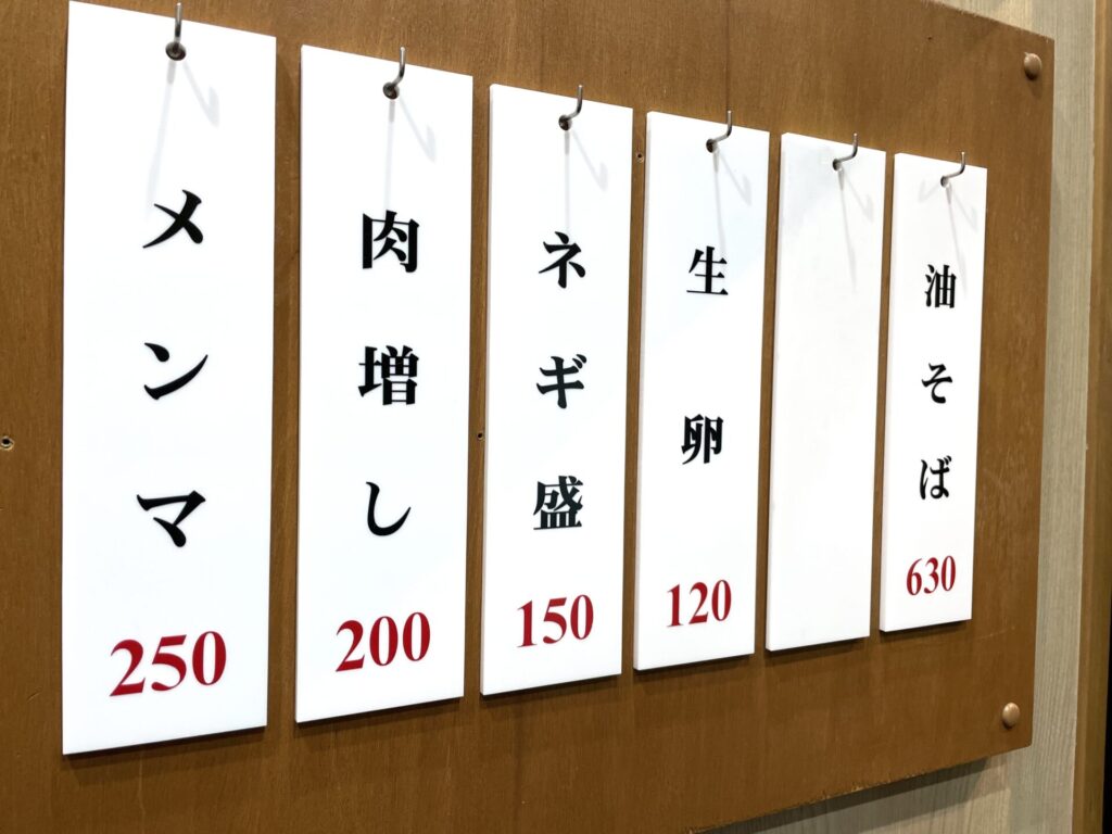 今回、私は「ネギ油そば 大盛」をチョイスしましたが、ノーマルの「油そば」は、なんと630円!この時代に破格の値段でいただけます。