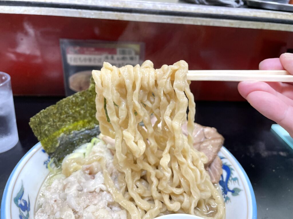 弾力感のある極太麺は一啜りごとに確かに記憶に刻まれるもの。